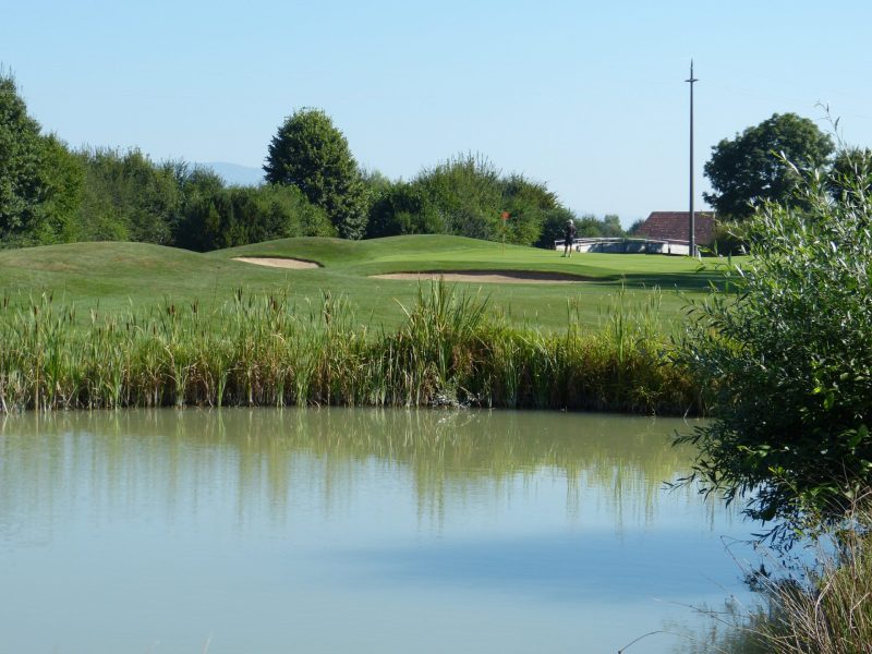 In Aetingen, unterhalb des Bucheggberges, hat der Golfplatzarchitekt John Chilver-Stainer zuerst eine 9-Loch-Anlage auf Solothurner Boden mit interessantem Layout und herausfordernden Greens ins ebene Gelände gebaut.